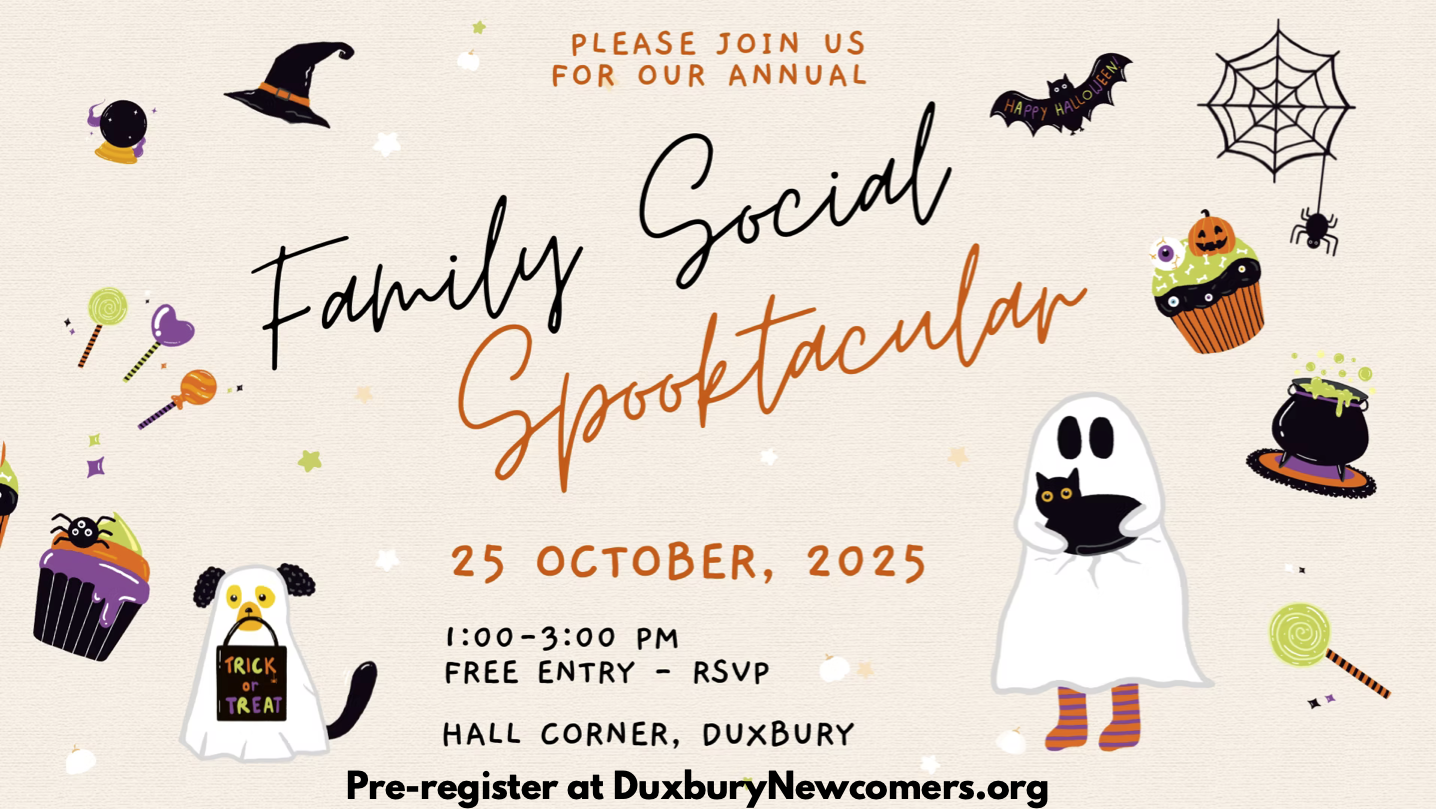 For more information visit our website: https://www.duxburynewcomers.org/event-details/spooktacular-family-social