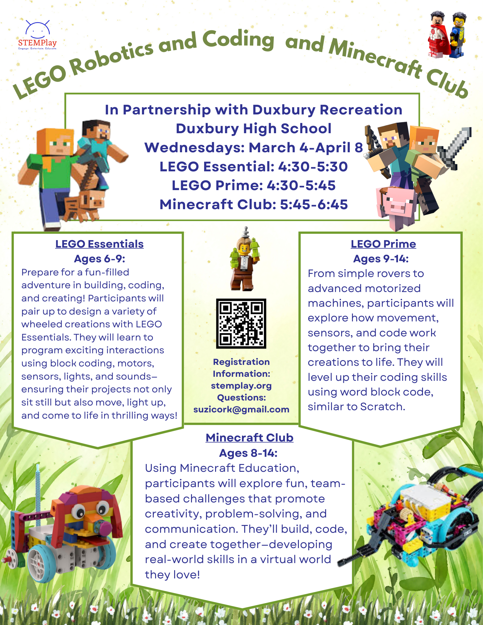 New program run through STEMPlay; Video Game Design! Please Click here or scan the QR Code above to learn more about the Wednesday afternoon offering at Duxbury High School March 4 - April 8.